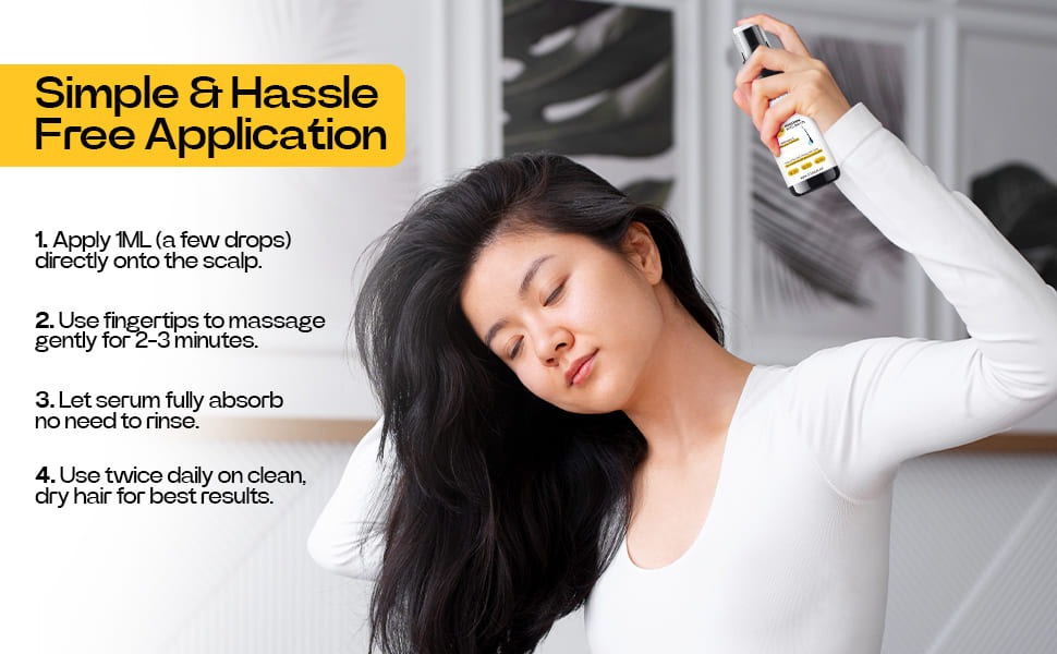 Apply 1 ml directly to the scalp in the area of hair loss twice daily, massaging gently until fully absorbed.